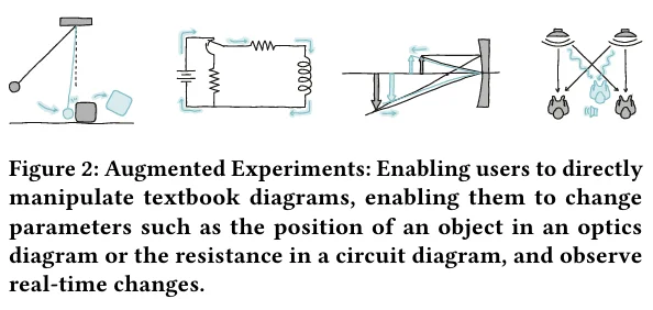 Gunturu, A., Wen, Y., Zhang, N., Thundathil, J., Kazi, R. H., & Suzuki, R. (2024, October). Augmented Physics: Creating Interactive and Embedded Physics Simulations from Static Textbook Diagrams. In Proceedings of the 37th Annual ACM Symposium on User Interface Software and Technology (pp. 1-12).